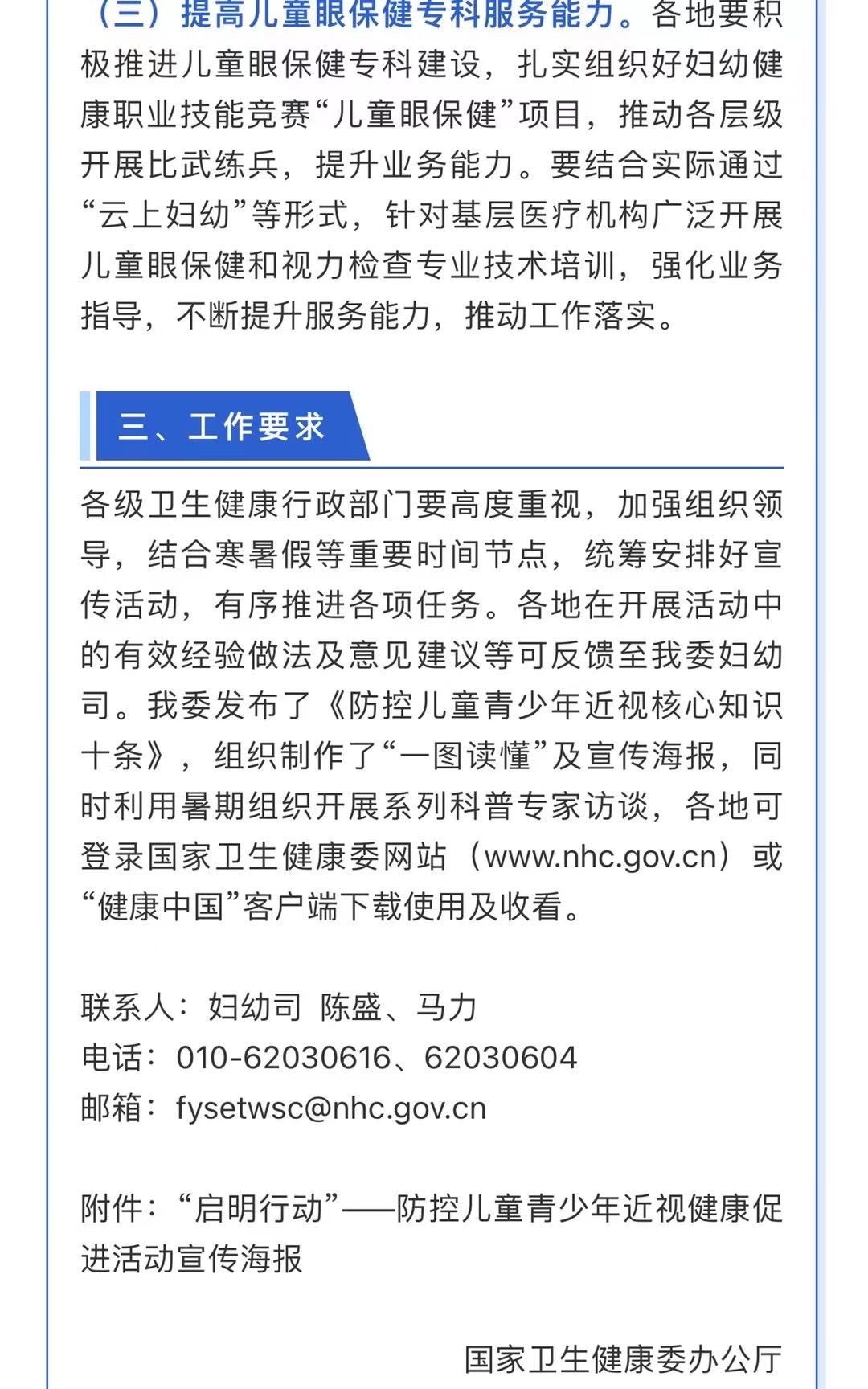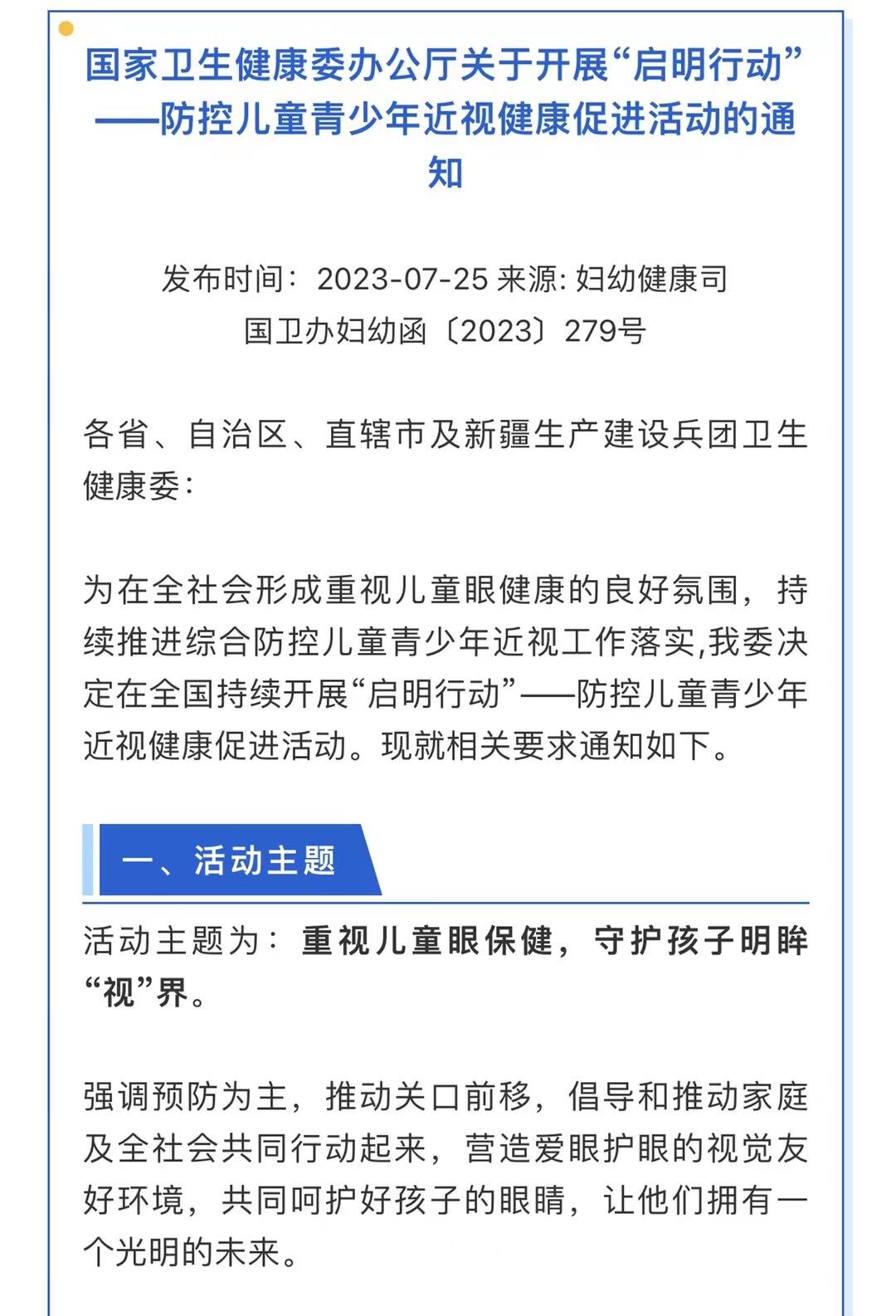 國家衛生健康委關于開展“啟明行動”---防控兒童青少年近視健康促進活動的通知