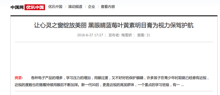 黑眼睛作為視力保健行業(yè)的發(fā)起人和倡導者,新產品一上市就受到業(yè)內普遍關注,多家媒體都進行的采訪報道,以下是新聞報道截圖。