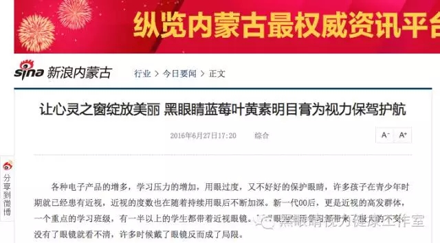 吸收快 效果好!新浪等多家媒體報道“黑眼睛視力健康工作室”