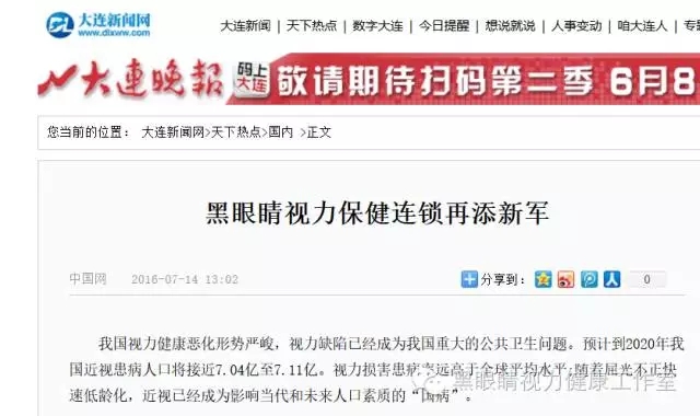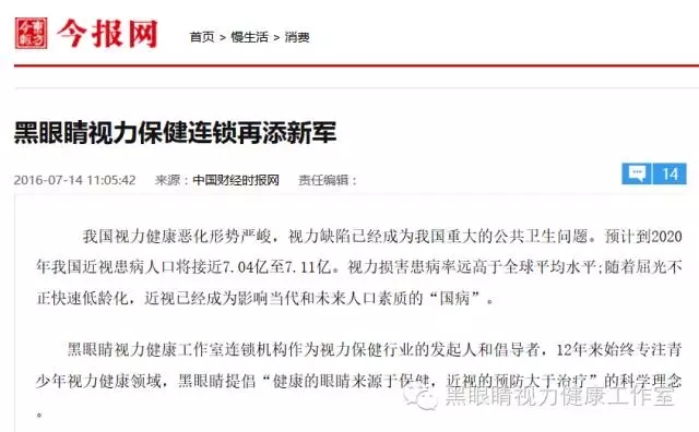 中國人近視率高,尤其是青少年的近視率逐年增加,引起社會的廣泛關(guān)注。黑眼睛保健連鎖專注視力健康12年,自新產(chǎn)品上市以來,受到許多媒體的關(guān)注。近期,有多家媒體深入采訪黑眼睛,原文如下: