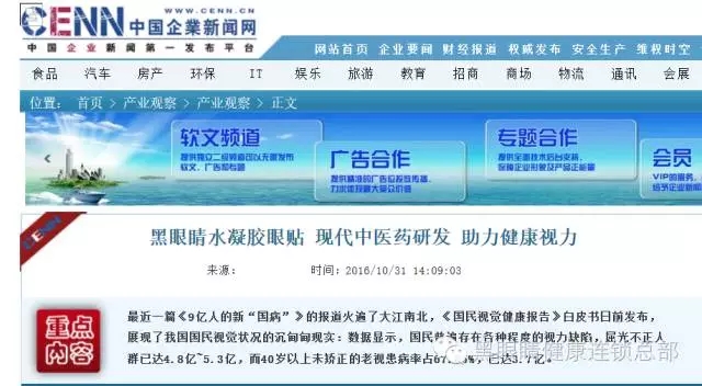 黑眼睛健康集團一直不斷探索中醫(yī)藥現(xiàn)代化道路,從傳統(tǒng)中藥發(fā)展提高到現(xiàn)代化中藥。中藥現(xiàn)代化來源于傳統(tǒng)中藥的經(jīng)驗和臨床,依靠現(xiàn)代先進科學技術手段,遵守嚴格的規(guī)范標準,研究出優(yōu)質(zhì)、高效、安全、穩(wěn)定、質(zhì)量可控、使用方便,并具有現(xiàn)代劑型的新一代產(chǎn)品,符合并達到國際主流市場標準,可在市場上廣泛流通。“新黑眼睛牌水凝膠型藍莓葉黃素眼貼”就是采用現(xiàn)代中醫(yī)藥技術,利用已掌握的TDD1、TDD2、TDD3三類基質(zhì)材料制備核心技術作為經(jīng)皮吸收系統(tǒng)基質(zhì)的現(xiàn)代技術。這種技術從根本上解決了傳統(tǒng)“水貼”基質(zhì)不透氣、易過敏 、中藥含量小的缺點,具有生物相容性好、無毒副作用、不致敏、使用方便和有效成分含量大的優(yōu)點。因為純中藥原料萃取工藝要求苛刻、生產(chǎn)流程復雜、原材料成本高等原因,一般企業(yè)很難研發(fā)生產(chǎn),目前該產(chǎn)品在國內(nèi)市場處于壟斷地位。