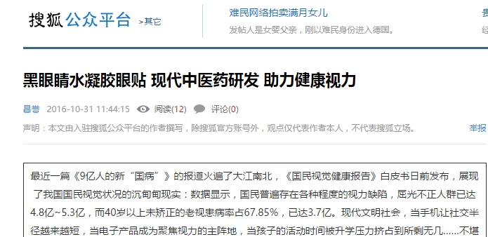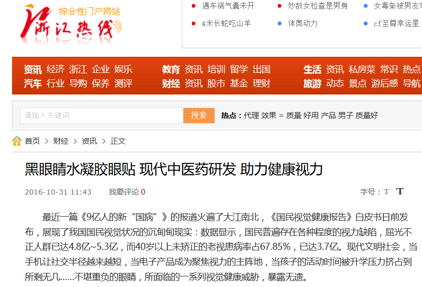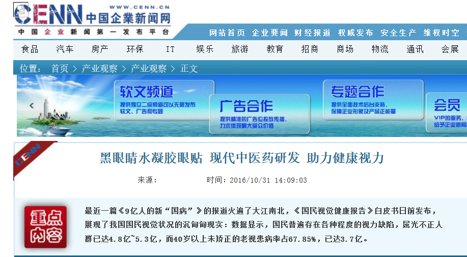 黑眼睛健康集團(tuán)一直不斷探索中醫(yī)藥現(xiàn)代化道路,從傳統(tǒng)中藥發(fā)展提高到現(xiàn)代化中藥。中藥現(xiàn)代化來源于傳統(tǒng)中藥的經(jīng)驗和臨床,依靠現(xiàn)代先進(jìn)科學(xué)技術(shù)手段,遵守嚴(yán)格的規(guī)范標(biāo)準(zhǔn),研究出優(yōu)質(zhì)、高效、安全、穩(wěn)定、質(zhì)量可控、使用方便,并具有現(xiàn)代劑型的新一代產(chǎn)品,符合并達(dá)到國際主流市場標(biāo)準(zhǔn),可在市場上廣泛流通。“新黑眼睛牌水凝膠型藍(lán)莓葉黃素眼貼”就是采用現(xiàn)代中醫(yī)藥技術(shù),利用已掌握的TDD1、TDD2、TDD3三類基質(zhì)材料制備核心技術(shù)作為經(jīng)皮吸收系統(tǒng)基質(zhì)的現(xiàn)代技術(shù)。這種技術(shù)從根本上解決了傳統(tǒng)“水貼”基質(zhì)不透氣、易過敏、中藥含量小的缺點,具有生物相容性好、無毒副作用、不致敏、使用方便和有效成分含量大的優(yōu)點。因為純中藥原料萃取工藝要求苛刻、生產(chǎn)流程復(fù)雜、原材料成本高等原因,一般企業(yè)很難研發(fā)生產(chǎn),目前該產(chǎn)品在國內(nèi)市場處于壟斷地位。