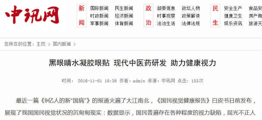 新黑眼睛牌水凝膠型藍(lán)莓葉黃素眼貼的研發(fā)以中醫(yī)理論為基礎(chǔ),“一清”“二通”“三補(bǔ)”。“一清”是指長時間用眼,造成眼部積郁,先清除眼部垃圾;“二通”是通過加速眼部血液循環(huán),使眼部各屈光調(diào)節(jié)器官通暢,促使睫狀肌恢復(fù)自我調(diào)節(jié)能力;“三補(bǔ)”是為眼部補(bǔ)充各種所需的營養(yǎng)成分,使眼睛加強(qiáng)抗疲勞能力和調(diào)節(jié)能力。