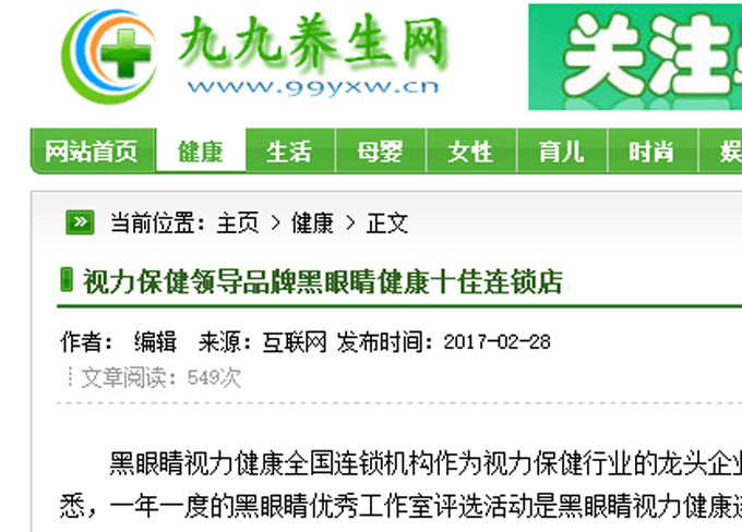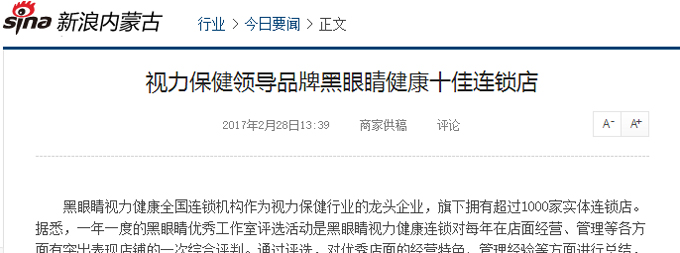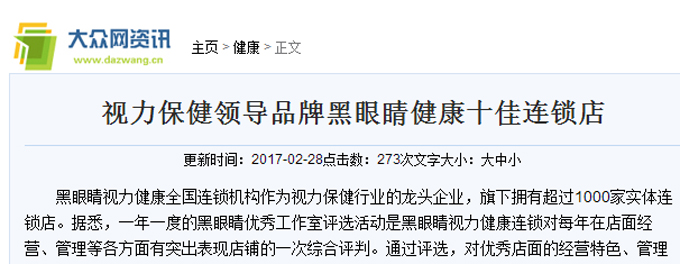 視力保健領導品牌黑眼睛健康十佳連鎖店