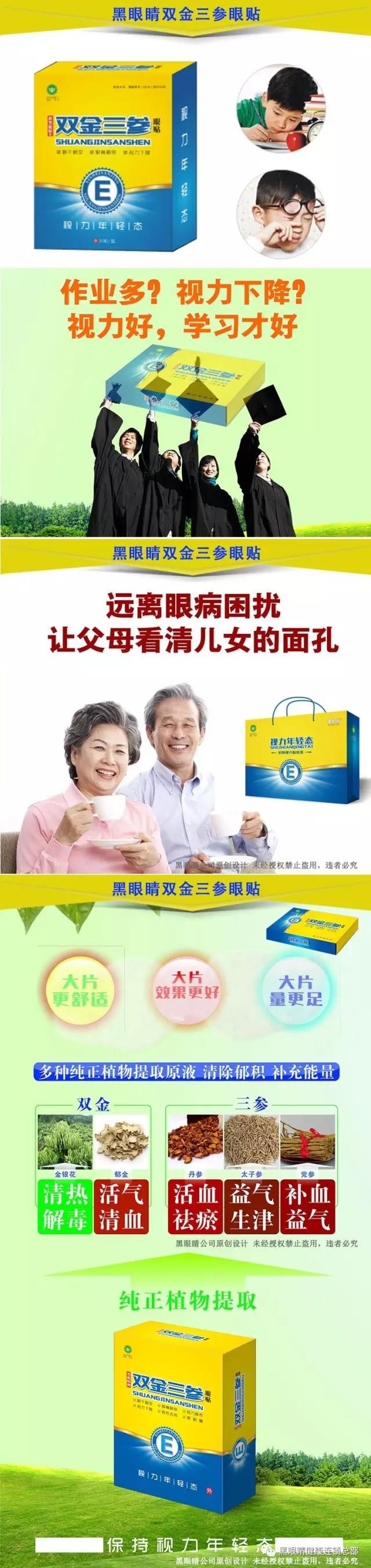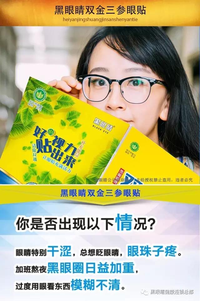 緩解疲勞不是我們的特點(diǎn),清除眼部積郁,補(bǔ)充能量,換發(fā)眼睛健康光彩,讓視力保持健康年輕態(tài)才是我們追求的目標(biāo)!黑眼睛雙金三參眼貼,以中華中醫(yī)理論為基礎(chǔ),專為中國人研制。