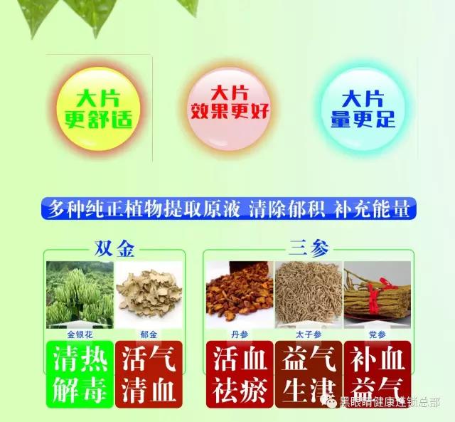雙金三參眼貼第一步就是清除積郁,疏通經絡,初期使用時眼睛會出現流淚和眼屎增多的情況,這是眼睛在清除垃圾,使用一段時間后發現排泄物會越來越少,眼睛越來越輕松。第二步就是為眼睛補充能量。眼部血管非常的細,口服食品和藥物很難直達眼部,黑眼睛牌雙金三參眼貼富含眼部健康需要的多種元素,通過穴位透皮吸收的方法直達眼睛,為眼睛補充能量,使用后明顯感覺眼睛調節舒適,視物清晰。