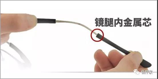 這屬于比較明顯的可以識別的金屬,但是還有一些眼鏡的金屬件是包含在金屬內(nèi)部的,就很難通過肉眼識別了。
