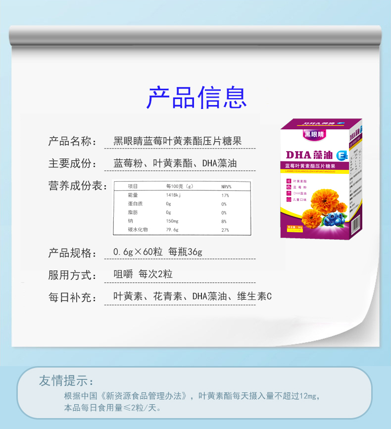 黑眼睛DHA藻油藍莓葉黃素酯壓片